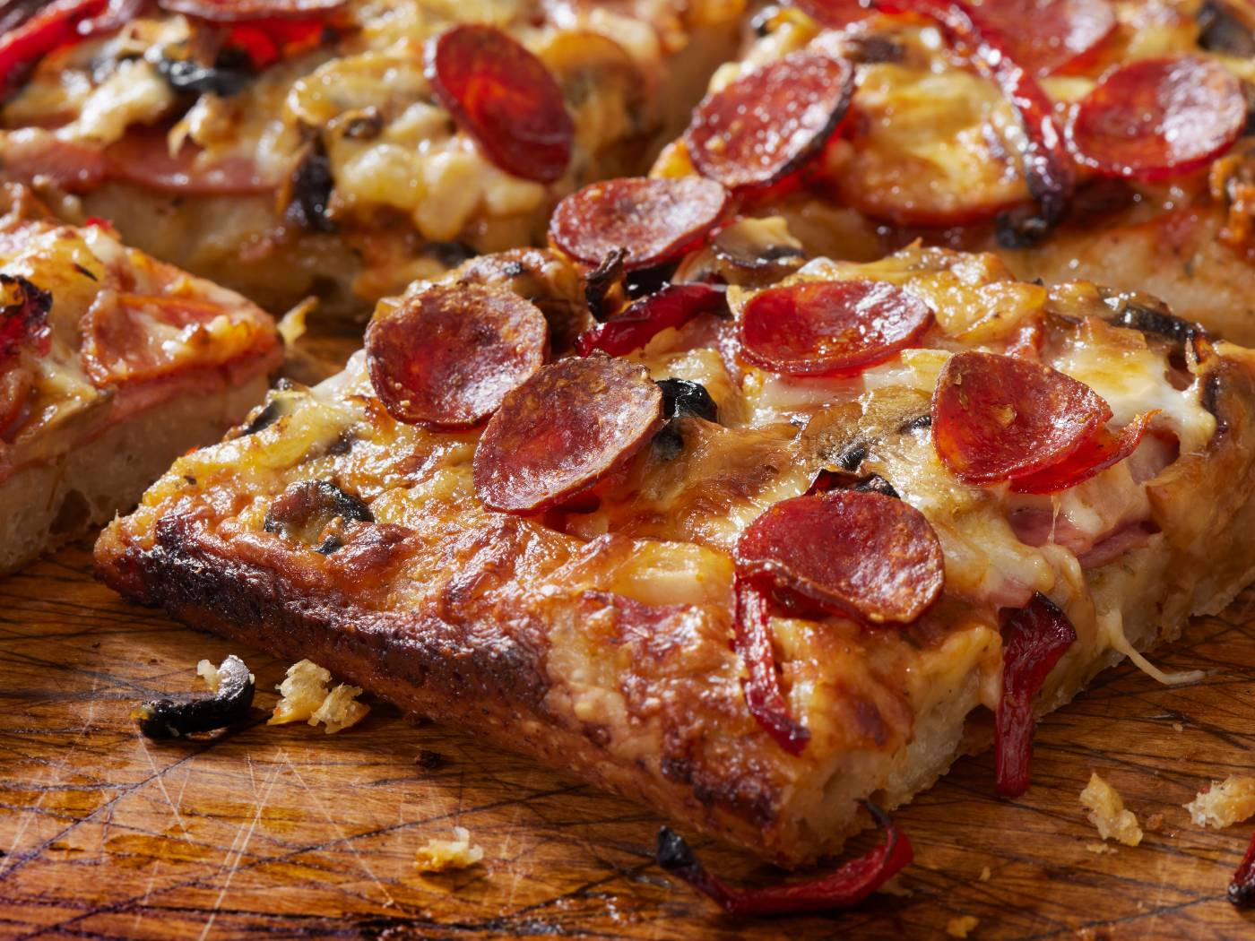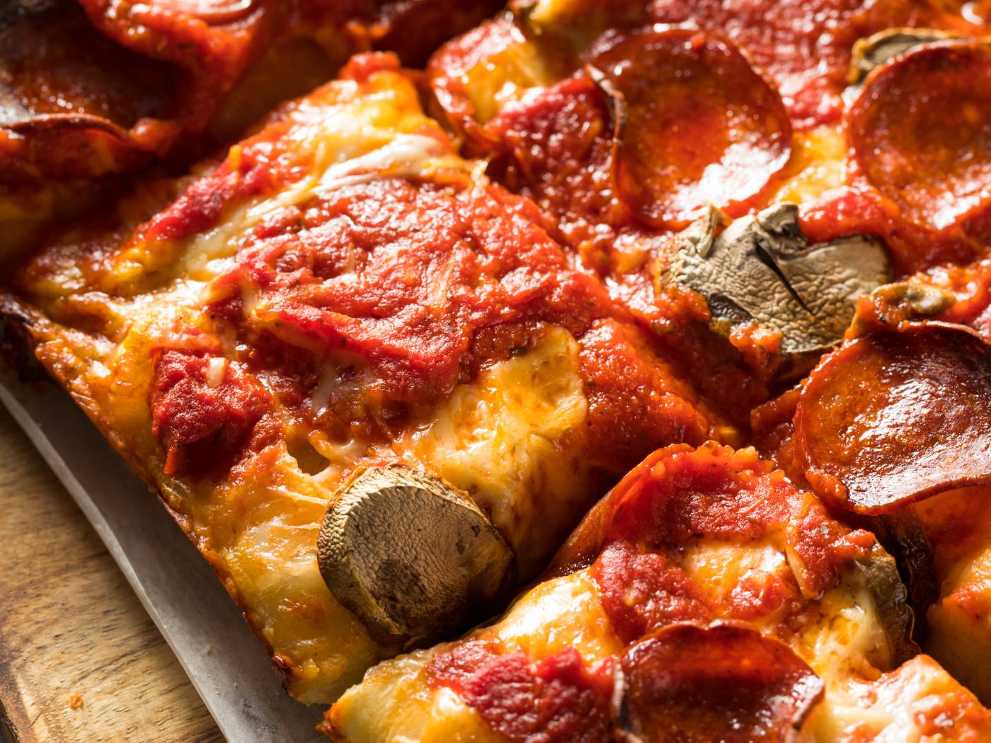 Specializing in Detroit-style pizza, Bricks Corner offers crispy, caramelized cheese edges and fluffy dough.